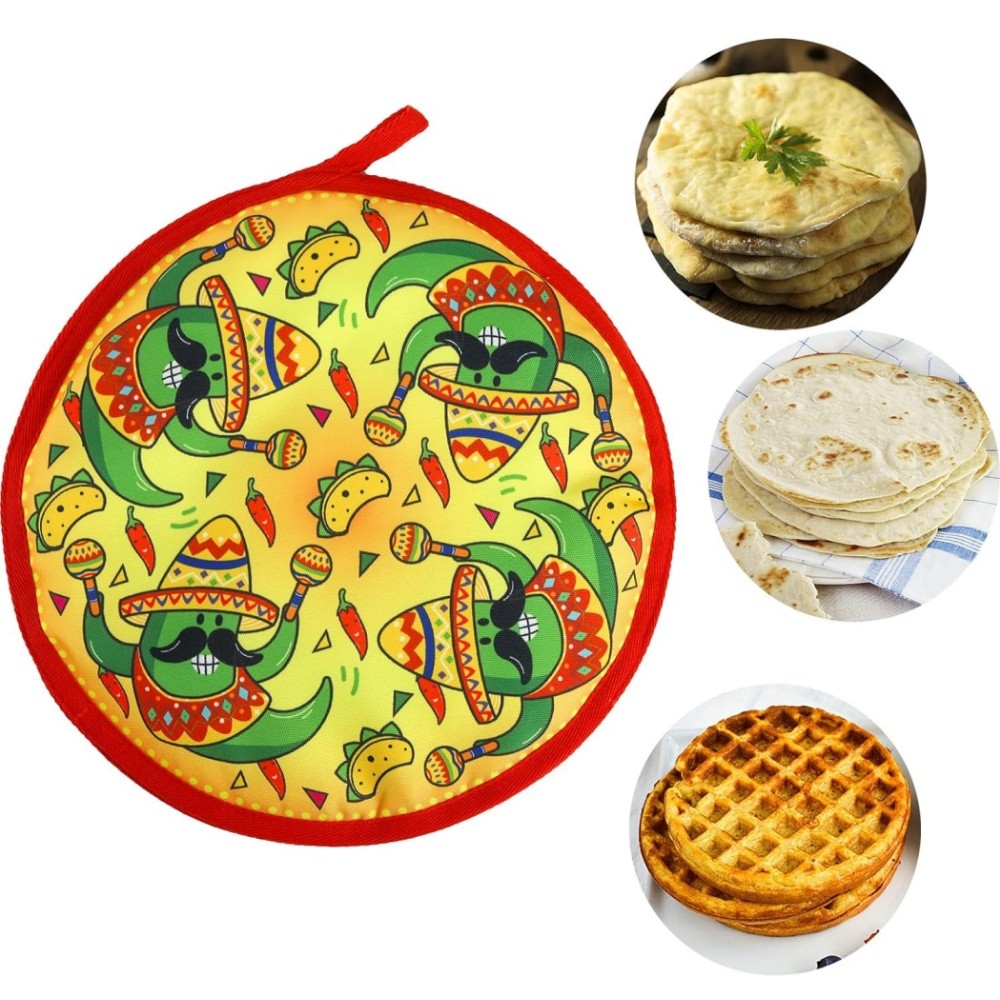 Designed for practicality and ease of use, it is completely microwave-safe. The polyester material is hand-washable and designed for air-drying, ensuring simple cleaning and maintenance. It's versatile enough to hold not just tortillas, but also tacos, burritos, pita bread, naan, pancakes, and much more.
