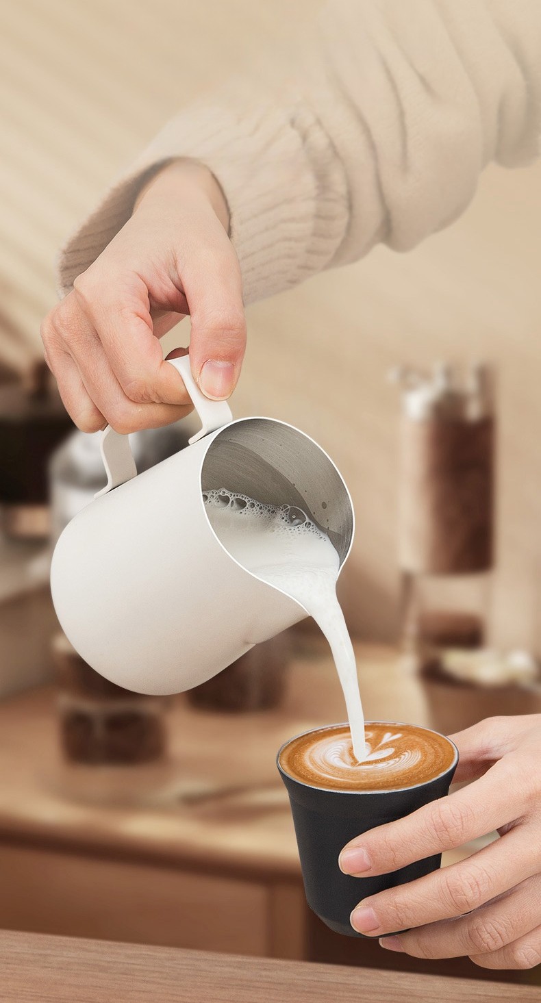 The accompanying latte art tool is perfect for creating beautiful designs and patterns, adding a personal touch to your coffee creations.