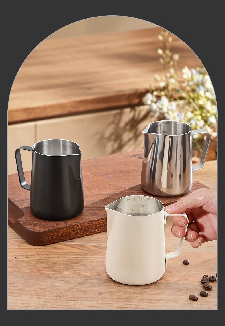 Unleash your inner barista with our 12oz (350ml) Milk Frothing Pitcher & Latte Art Tool Set, designed for coffee enthusiasts and professionals alike.