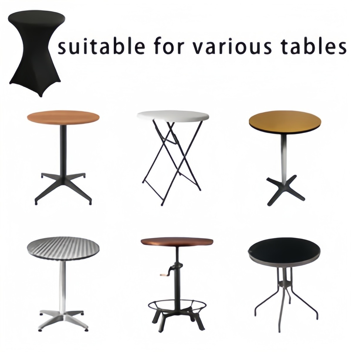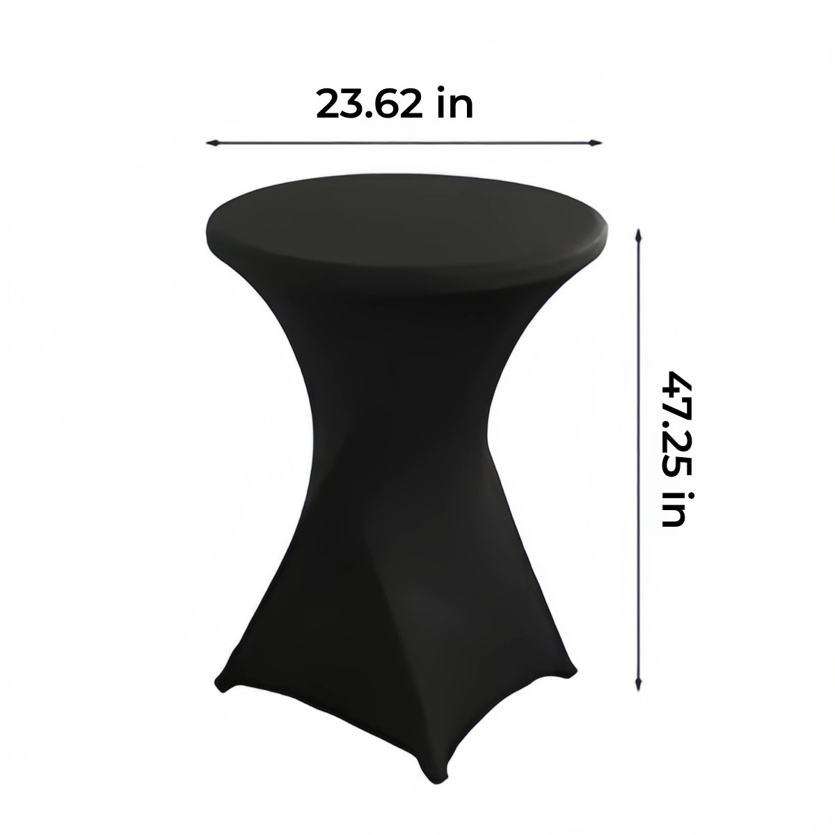 Experience a flawless fit with our premium stretch cocktail table cover. Made from 92% polyester and 8% spandex, it provides enhanced elasticity and thickness for superior durability. The round cover easily fits tables measuring 22-24 inches in diameter and 46-48 inches in height.