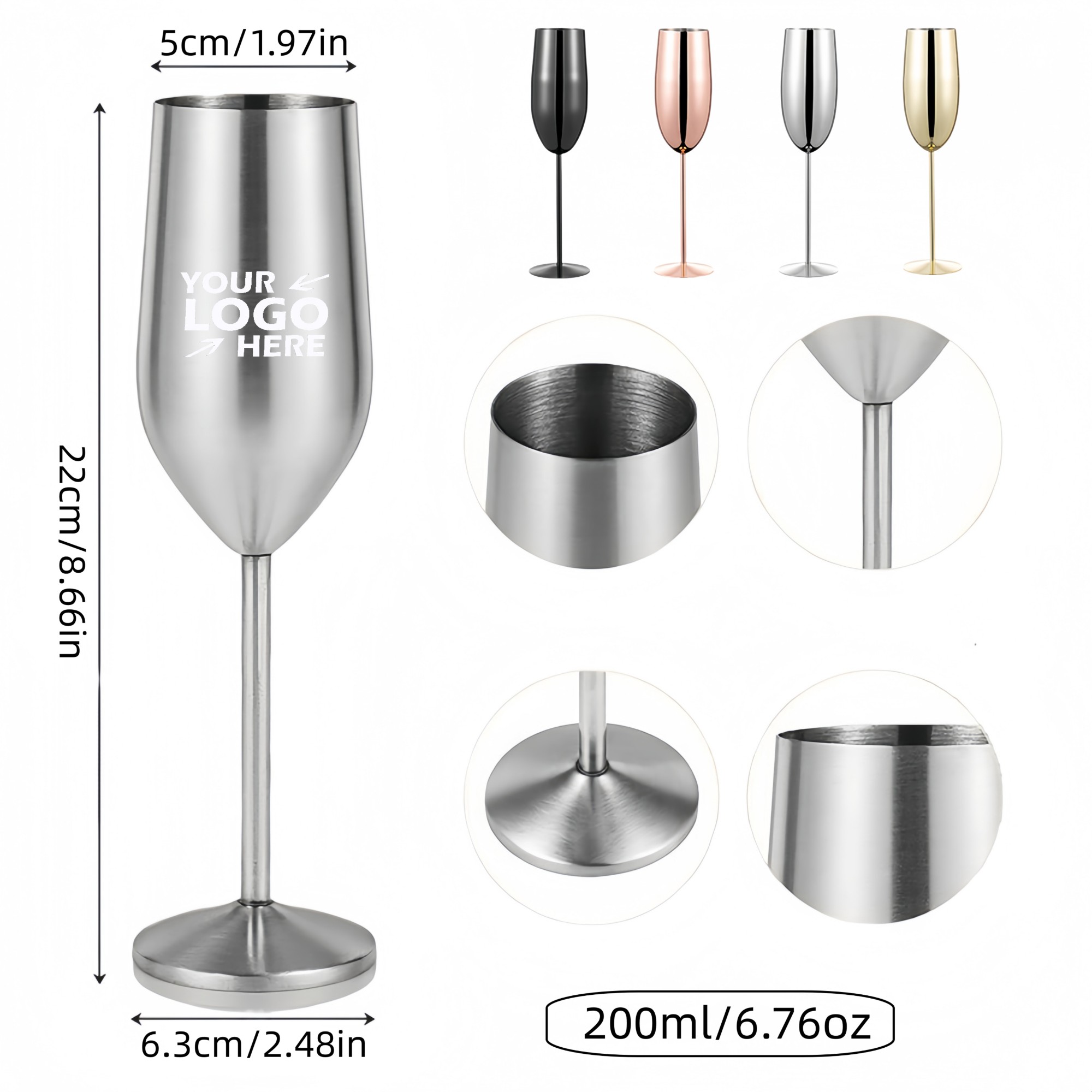 This 200ml (6.7oz) stainless steel champagne flute features a sleek, modern silhouette that adds a refined touch to any celebration. Crafted from durable stainless steel, it offers excellent resistance to breakage, making it a reliable alternative to traditional glass flutes for both indoor and outdoor use.