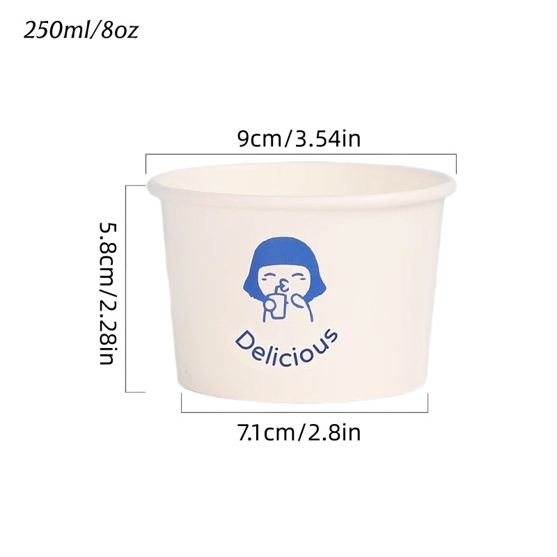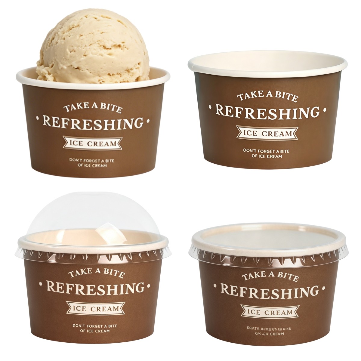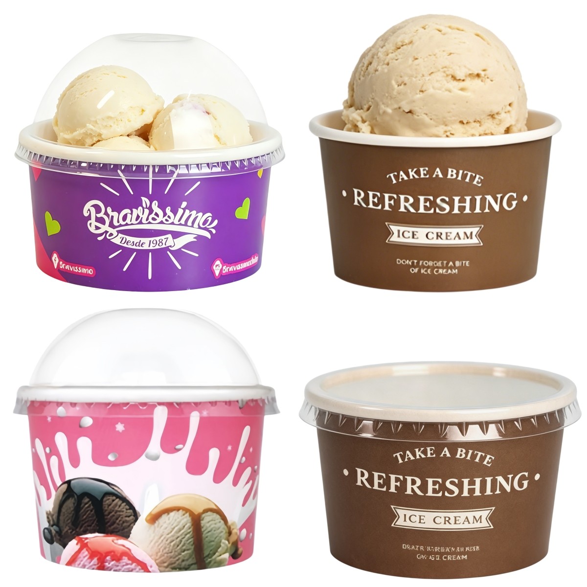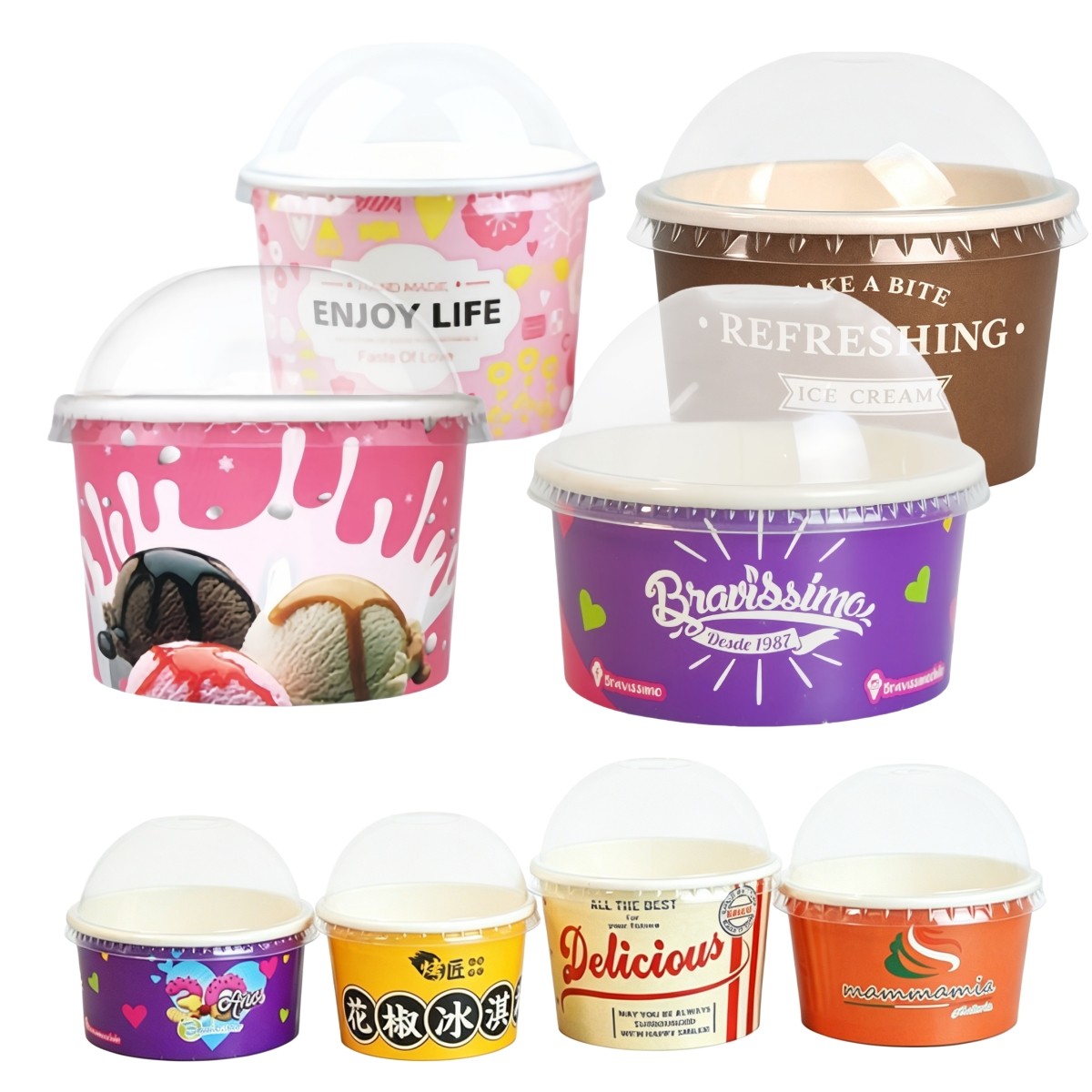 Designed for convenience and versatility, these disposable cups are ideal for ice cream, frozen yogurt, snacks, and dessert samples. They are available with dome or flat lid options to meet different serving and presentation needs. Custom sizes and printing options are also available upon request, feel free to contact us for details.