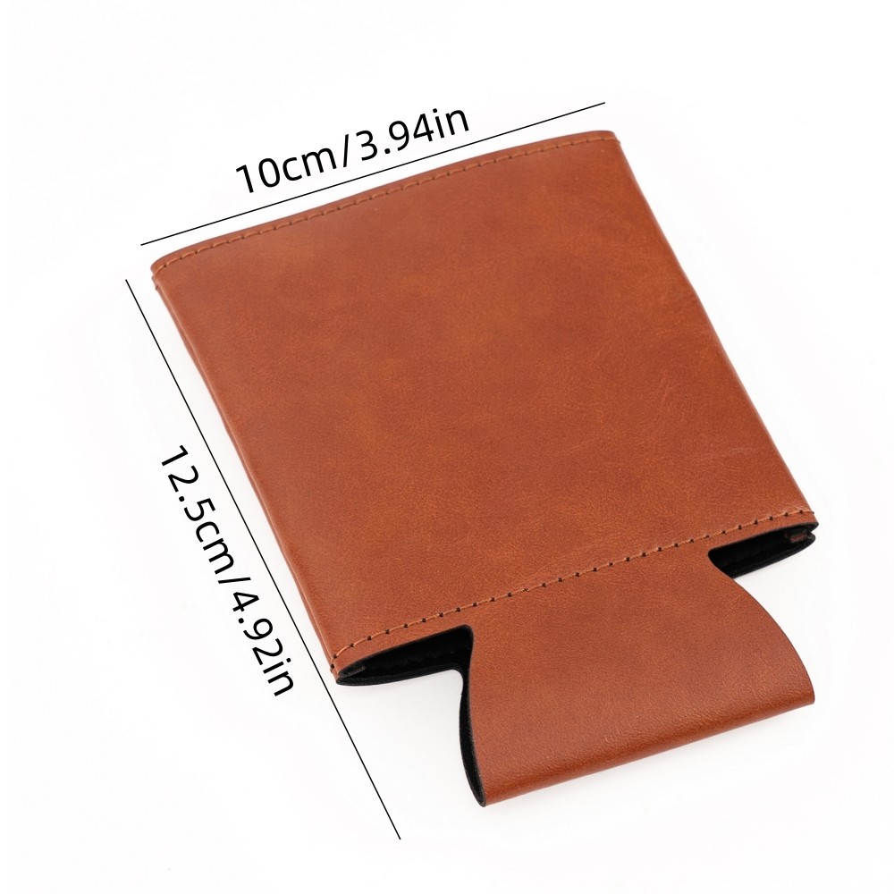 This beer can cooler sleeve is designed to keep your drinks cooler for longer while preventing condensation from wetting your hands or surfaces. Made with durable PU leather materials, it provides a comfortable grip and helps maintain the temperature of your beverage during use.