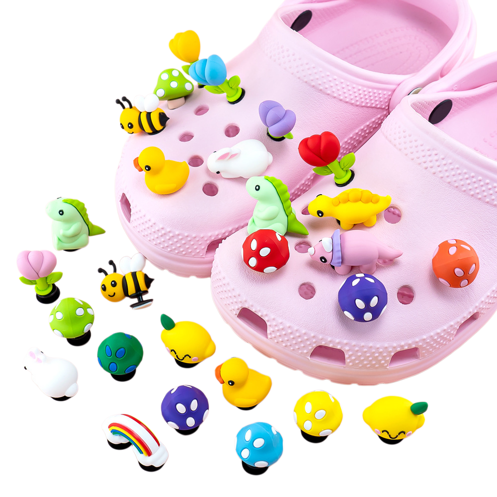 Crafted from durable, waterproof PVC, our shoe charms are built to resist daily wear and tear while maintaining long lasting vibrant colors. They are available in a wide variety of 3D designs including animals, emojis, fruits, and more, with each design typically within 1.6 inches.