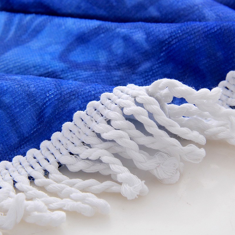 These large, round beach towels with tassels measure 59 inches in diameter (including tassels) and are made from 250gsm microfiber material, offering ample space for you, your loved ones, or even your pets to enjoy together during your travels.