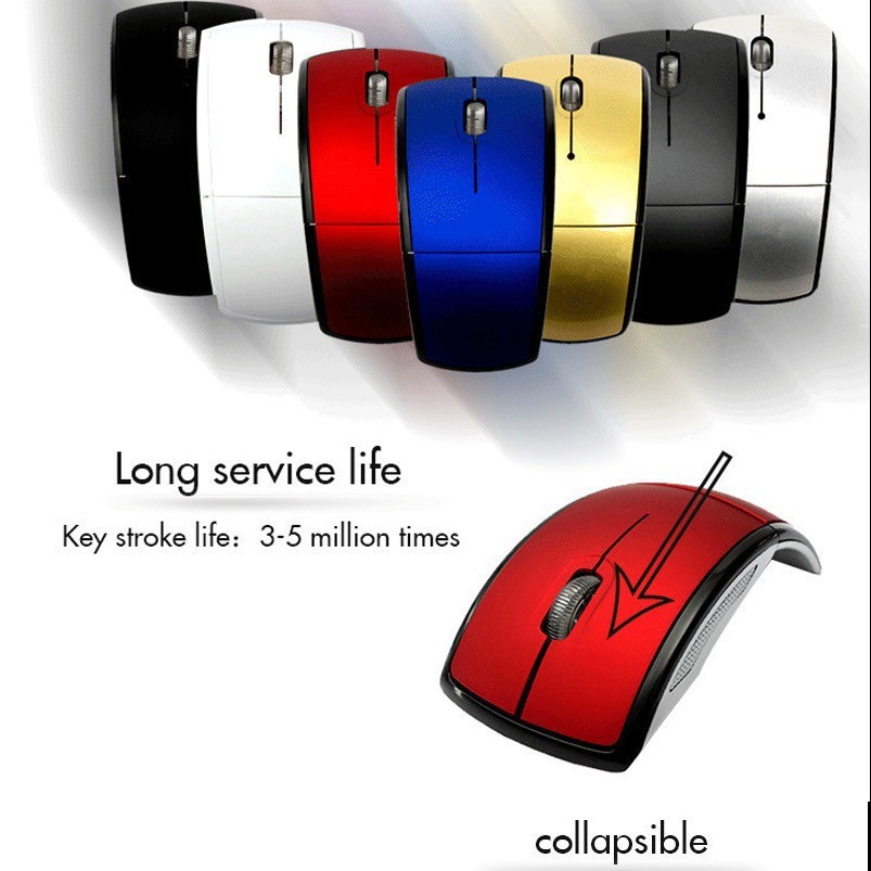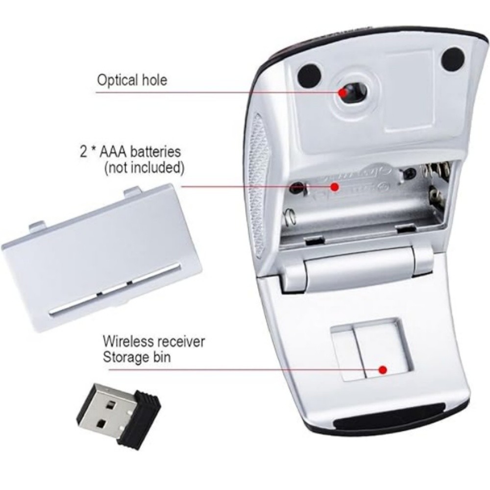 This wireless laptop mouse features an ergonomic foldable design with soft rubber grips that conform to either your right or left hand for natural comfort. Its contoured, sweat-resistant, and skin-friendly finish provides maximum comfort and support.