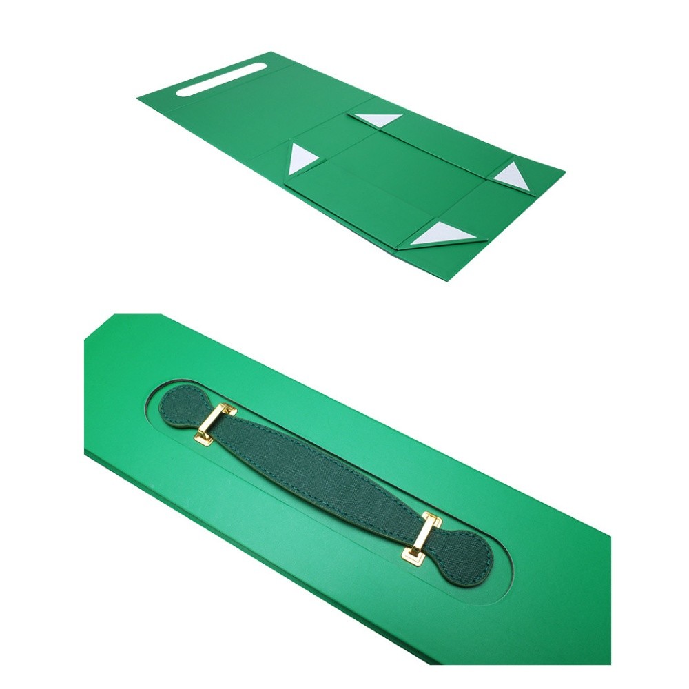 For added convenience, our premium design incorporates a secure magnetic closure and a convenient carry handle. This style folds flat for storage and is available in four vibrant colors (green, red, yellow, black), offering a space-saving solution that blends practicality with elegant presentation.