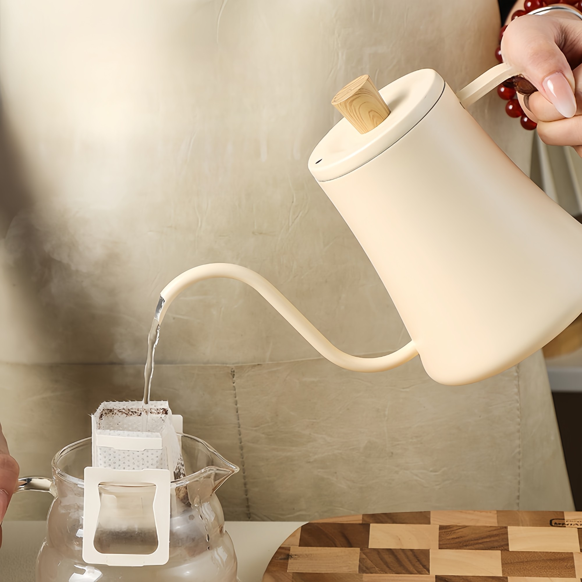 Experience the art of precision brewing with our Gooseneck Coffee Kettle, expertly crafted from premium 304 stainless steel for lasting durability and a sleek, modern look. Designed for pour-over perfection, its narrow spout ensures smooth, controlled water flow, giving you full command over every pour for a balanced, flavorful cup. The ergonomic handle provides a secure, comfortable grip, while the heat-resistant design keeps your hands safe.