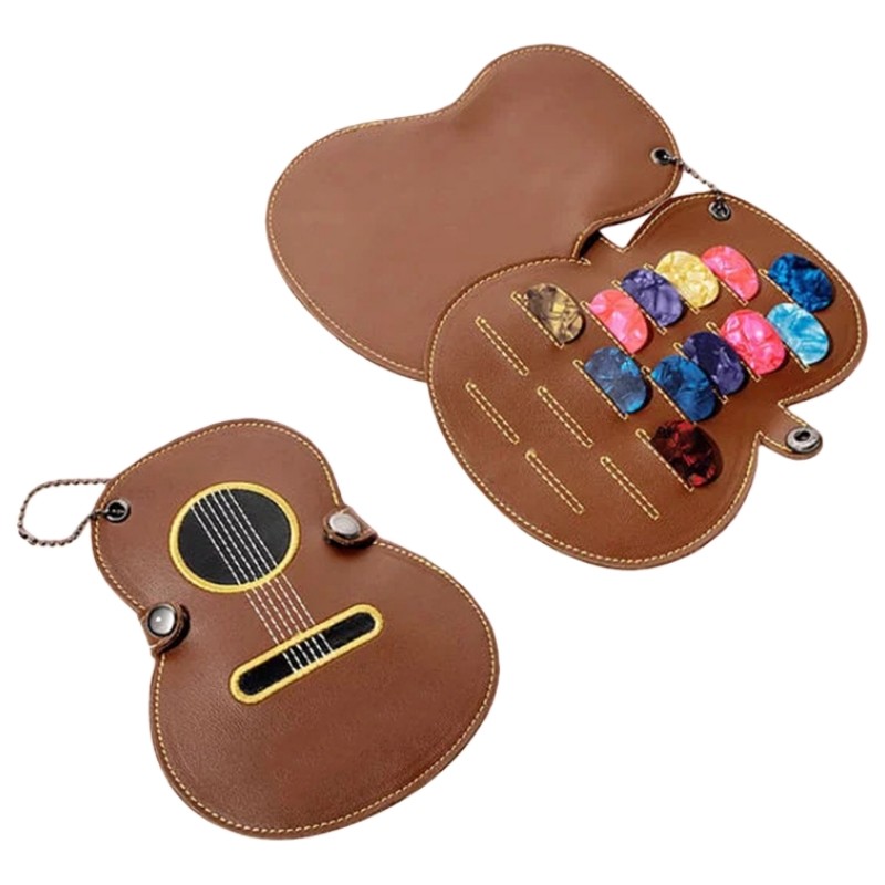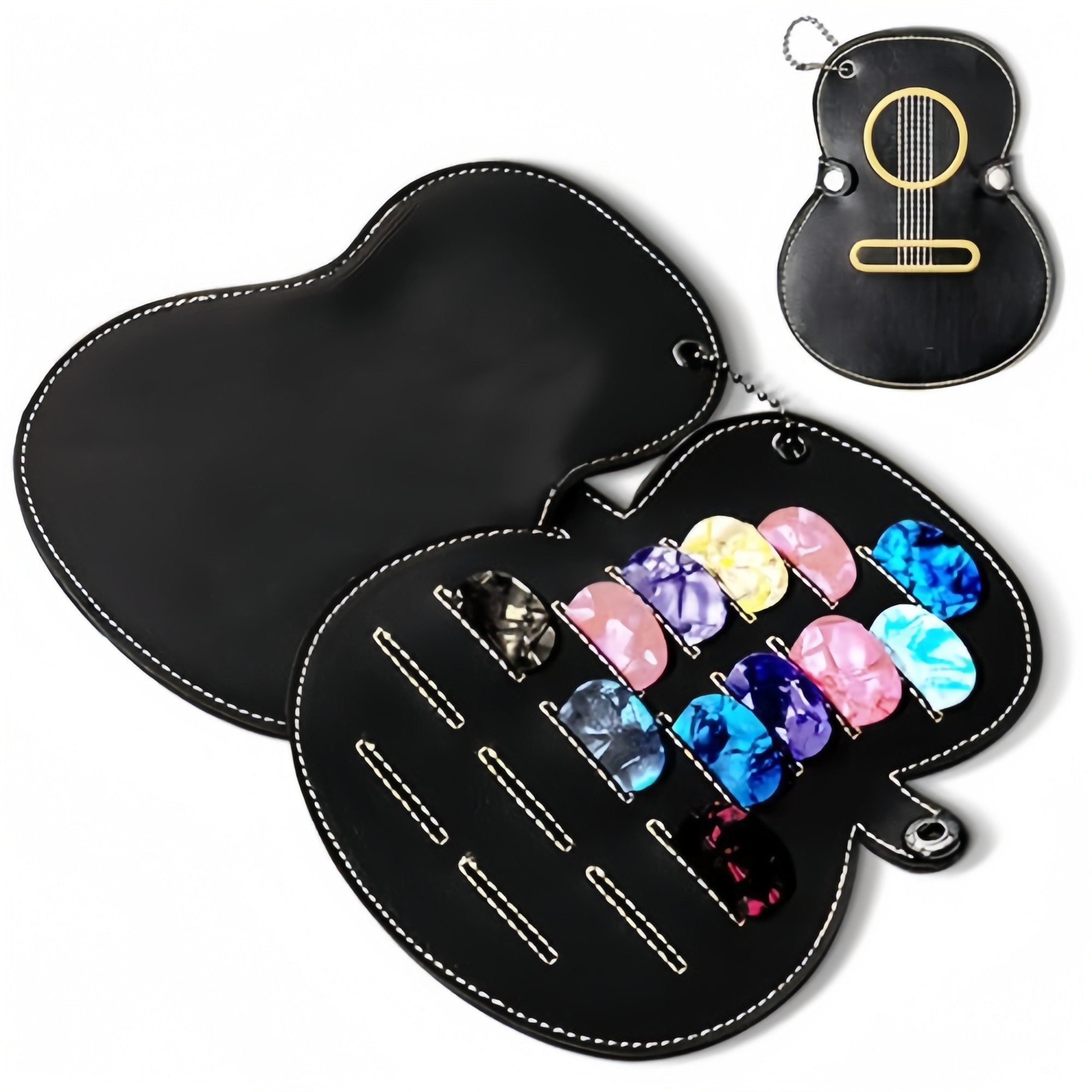 Designed with a secure closure and a practical interior layout, the guitar-shaped holder keeps up to 17 picks neatly organized and easy to access.