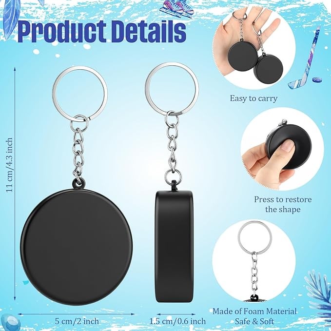 Additionally, its mini size makes it a great filler for goodie bags at any hockey or ice rink event, and a must-have for sports souvenir collectors. Easily attach it to car keys, backpacks, luggage, or locker keys for a stylish decorative touch on everyday items.
