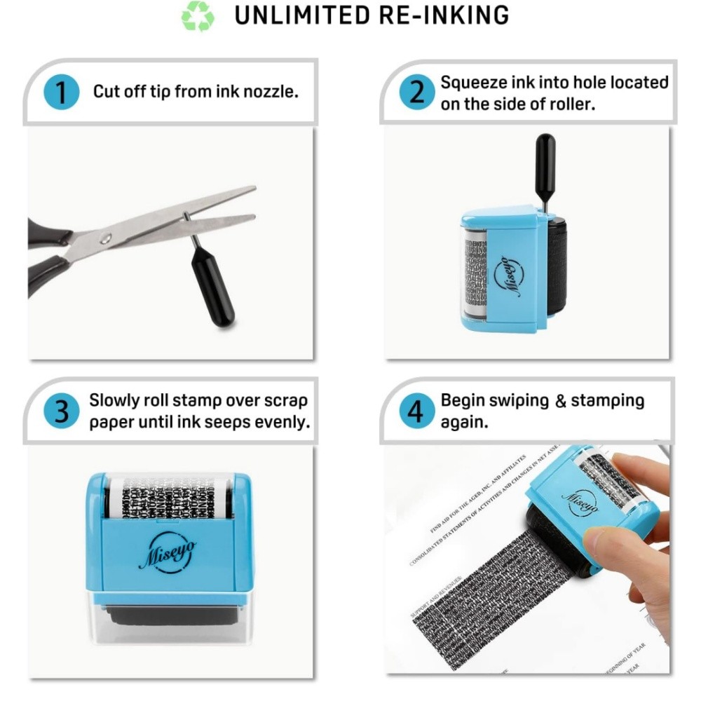 Take control of your data security with our 1.5-inch wide roller stamp! Its broad design allows you to cover large areas of private information in a single pass, saving time and effort.