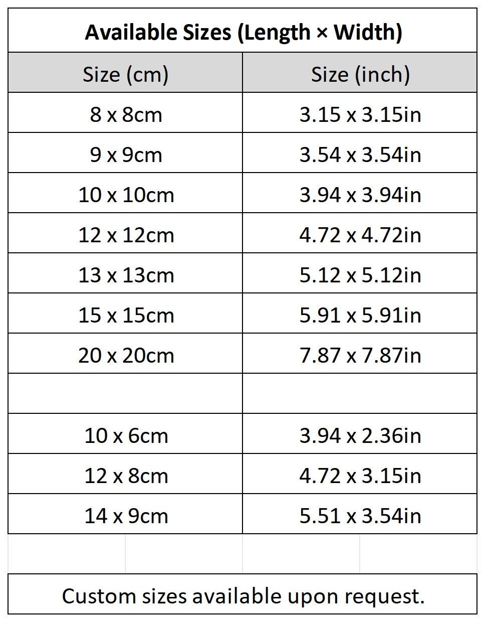 • Size: 20 x 20cm (7.87" x 7.87")