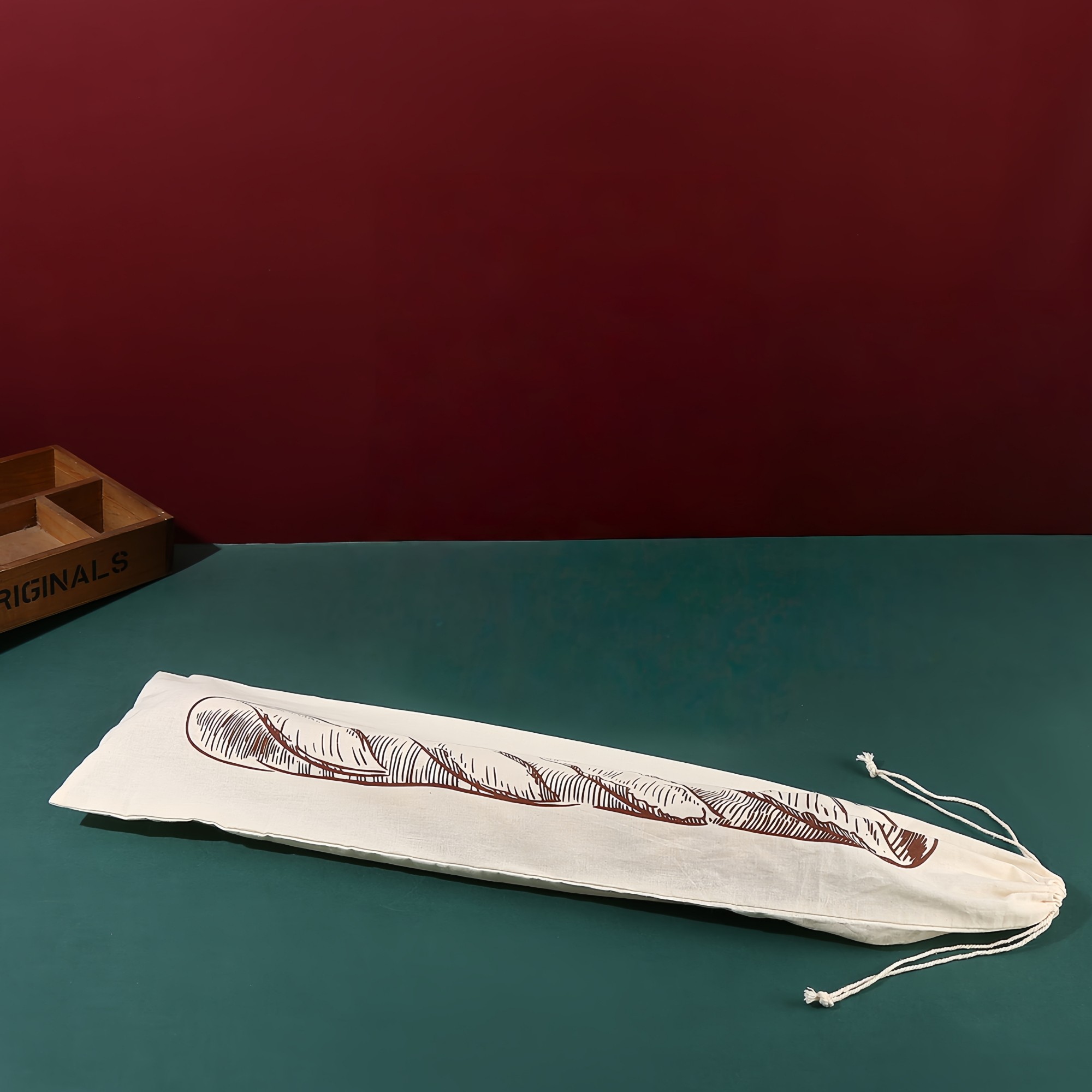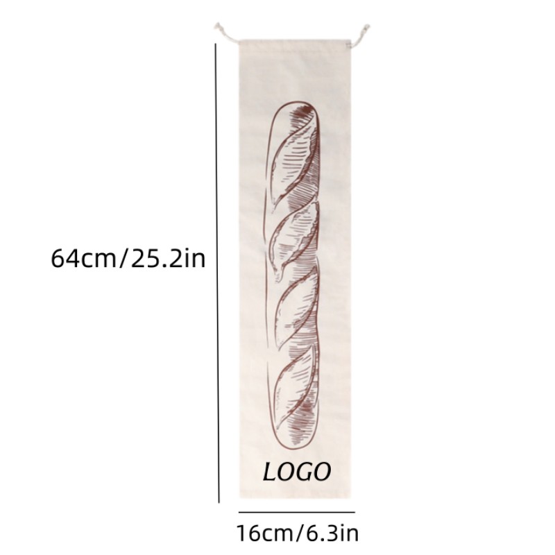 This reusable linen baguette bag is designed to keep your fresh bread protected at home or on the go. Made from breathable linen, it helps maintain the texture of your baguettes while reducing single-use packaging. The long 16 x 64 cm (6.3" x 25.2") size fits most standard baguettes, and the drawstring closure makes it easy to carry and store. Perfect for bakeries, markets, events, or daily use. Your logo can be added with heat-transfer printing, making it a great promotional or branded packaging option.