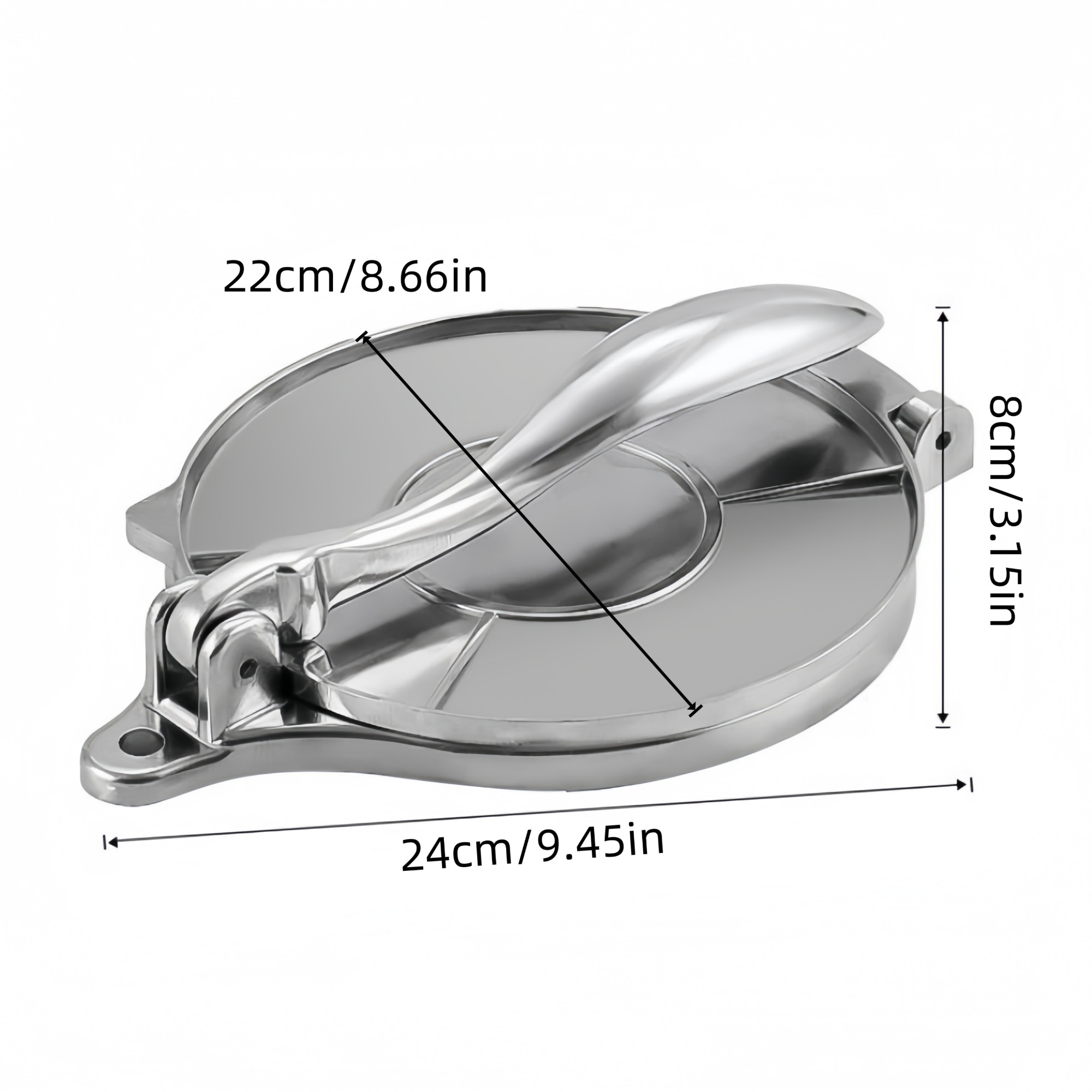 With a size of 24 x 22 x 8 cm (9.45" x 8.66" x 3.15"), the press provides ample surface area for preparing tortillas, small flatbreads, dumpling wrappers, or pastry bases.