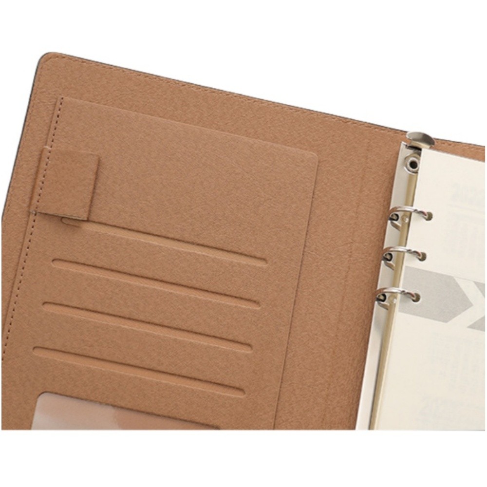 Crafted from high-quality PU leather for enhanced durability, this A5 planner features a sturdy metal magnetic clasp that snaps shut securely. The interior is thoughtfully designed with a built-in billfold and card pockets, perfect for storing bank cards, invoices, and other essentials.