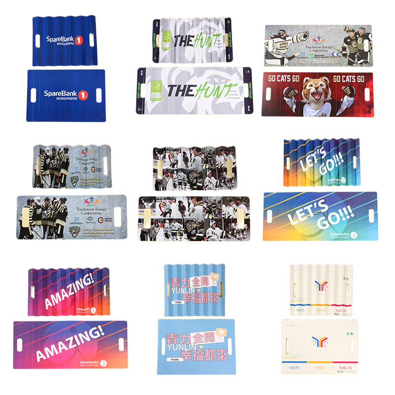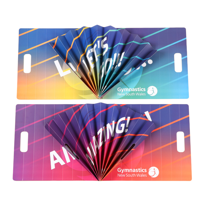Made of 300gsm coated paper, this foldable clapper fan offers both durability and a lightweight feel. Its smooth surface is ideal for high-quality, full-color custom printing, making it a great choice for advertising, branding, or event promotion.