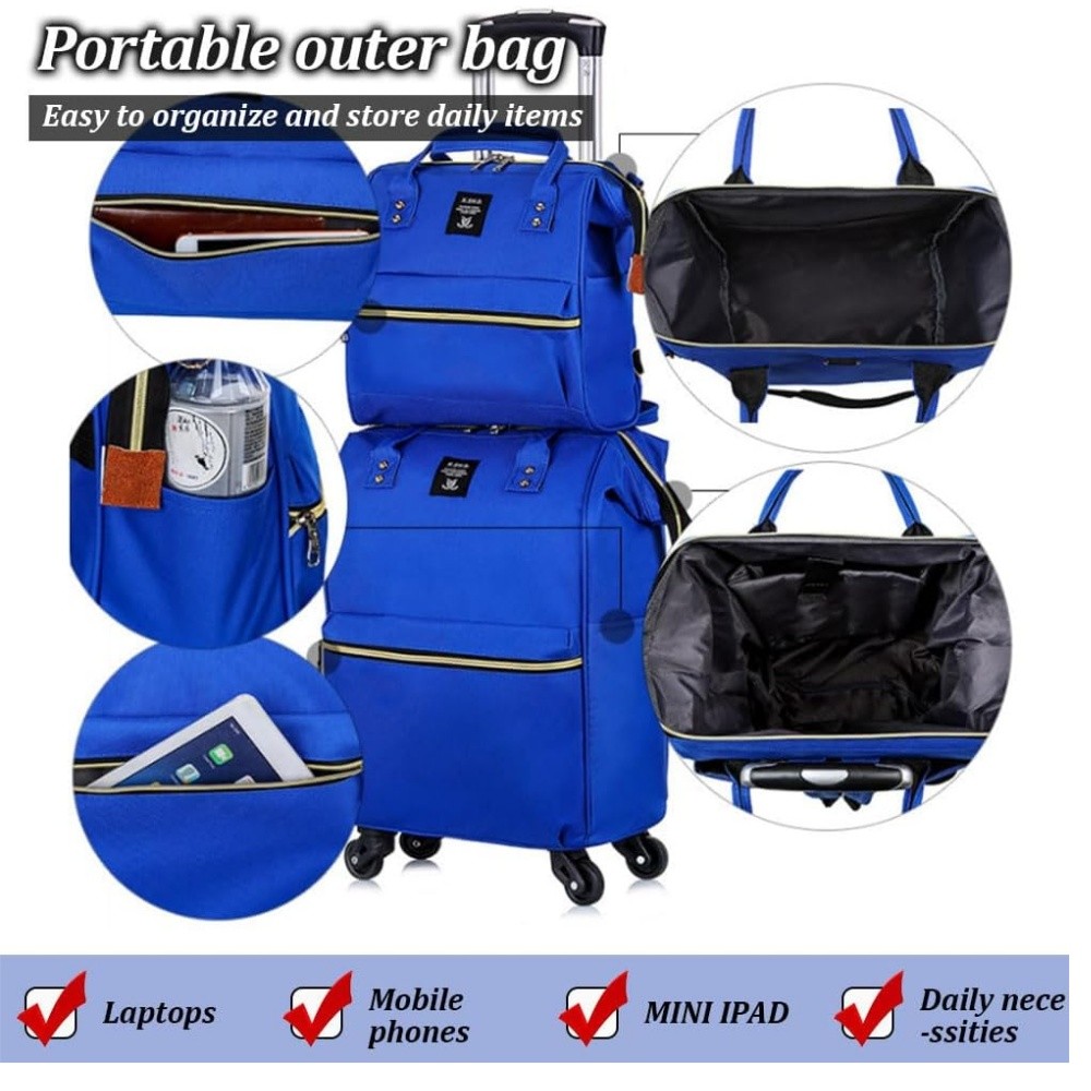 This carry-on luggage set is designed for effortless and compliant travel. The main suitcase meets standard airline size restrictions, with exterior dimensions of 22.44" x 13.78" x 7.87" (including wheels and handle). It features smooth, silent 360-degree wheels and a re-engineered lightweight construction for easy mobility, along with a thoughtfully organized interior with multiple pockets.