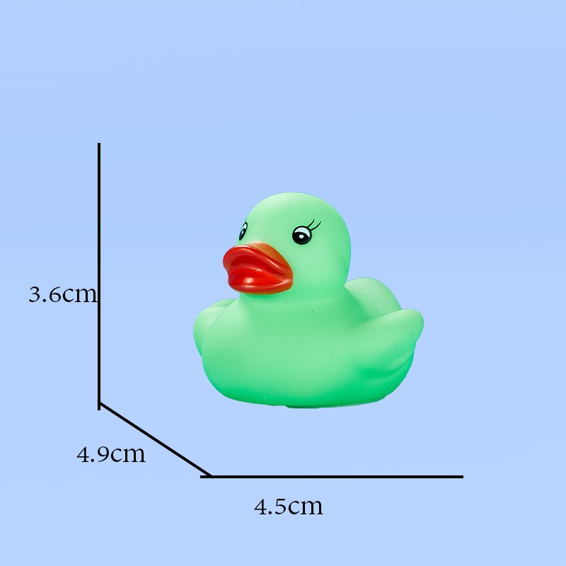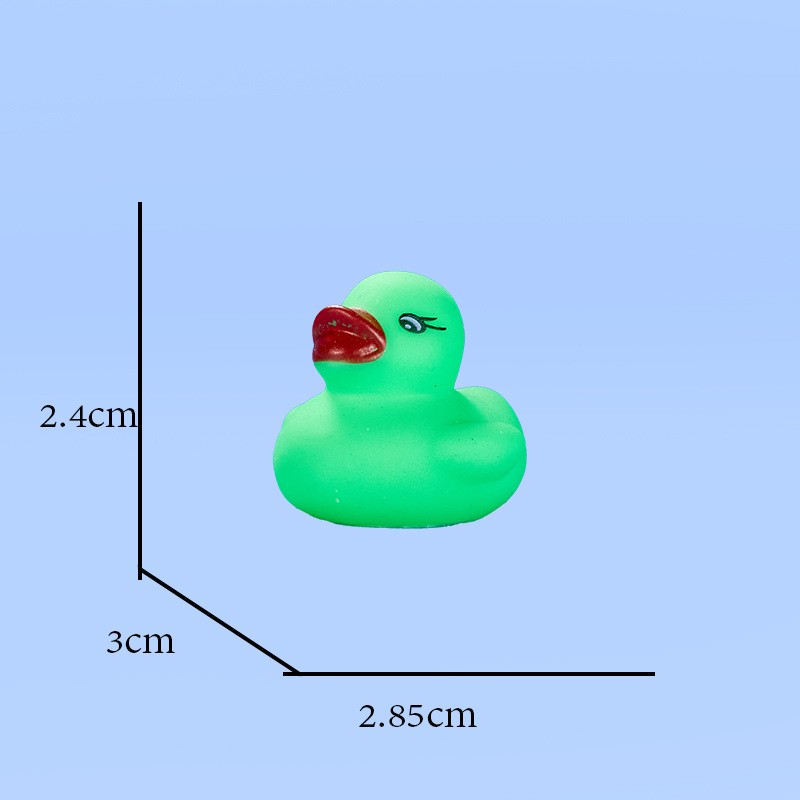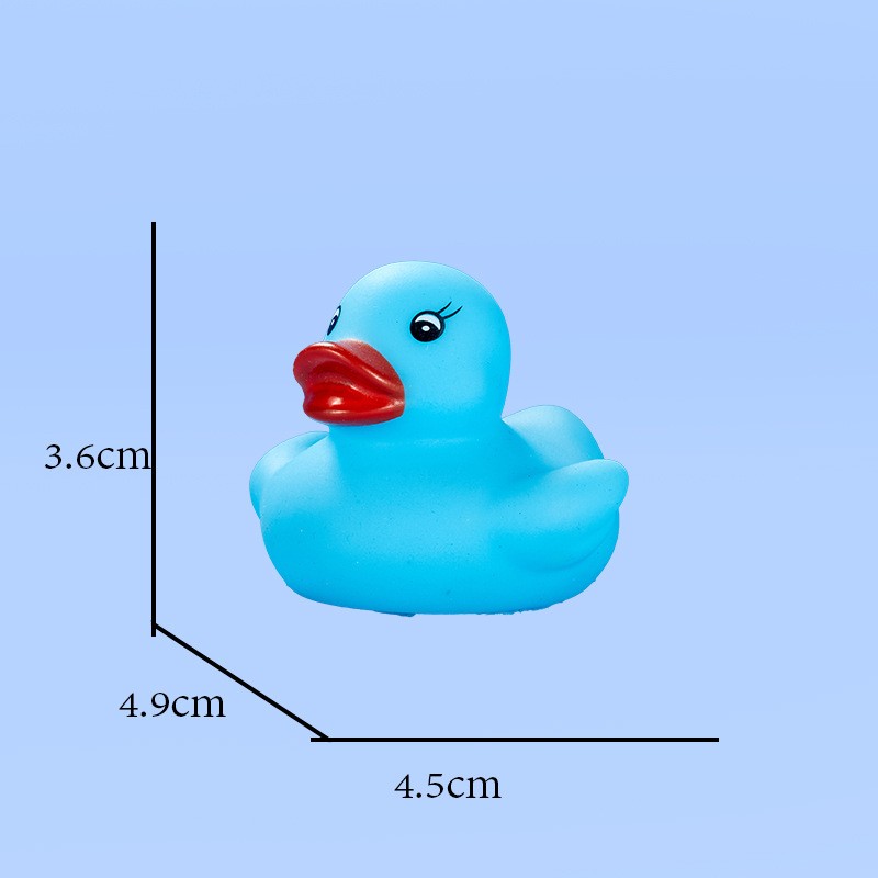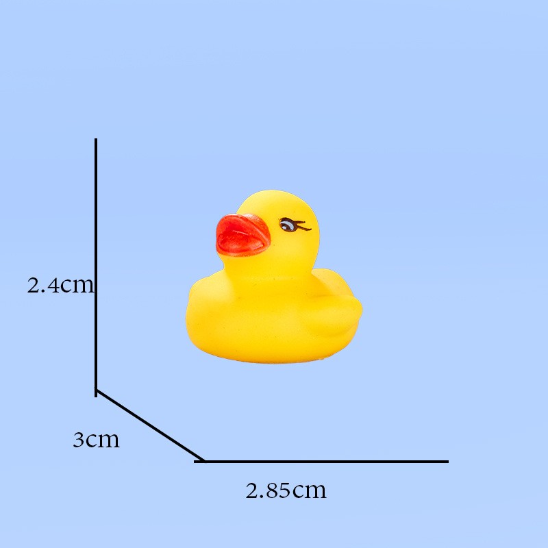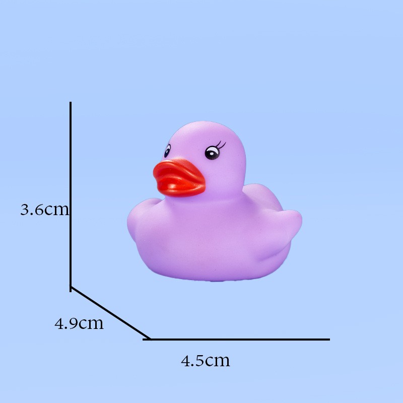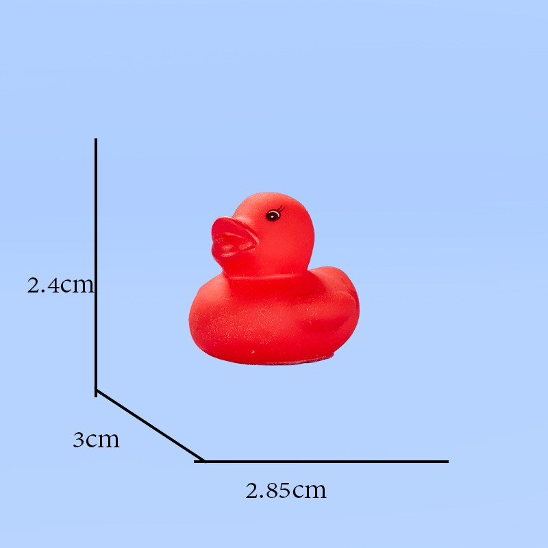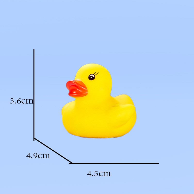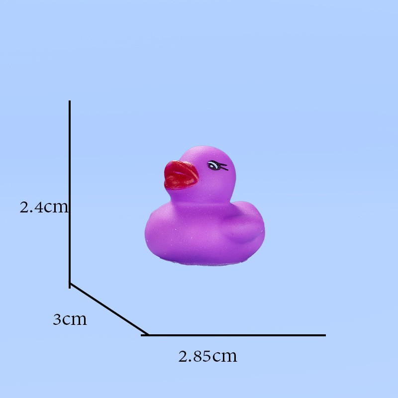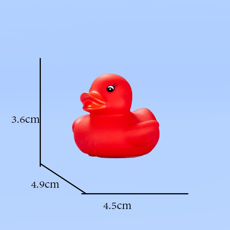 This duck is made of safe, non-toxic PVC material. It is durable and safe for babies to chew on during their teething phase. Size: 1.77" x 1.53" x 1.41". You can use it anywhere—whether in the pool or the bathtub.