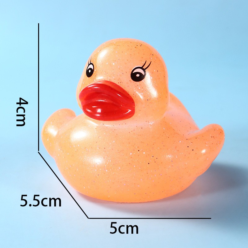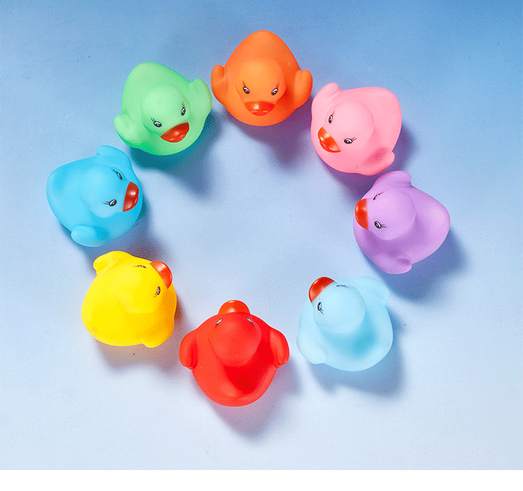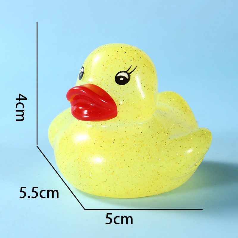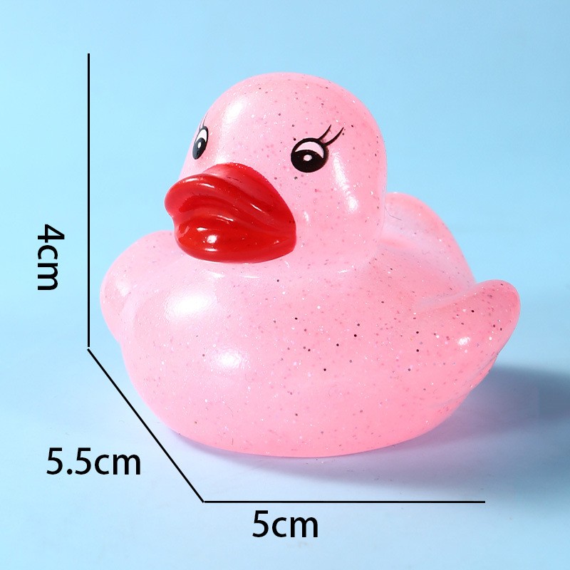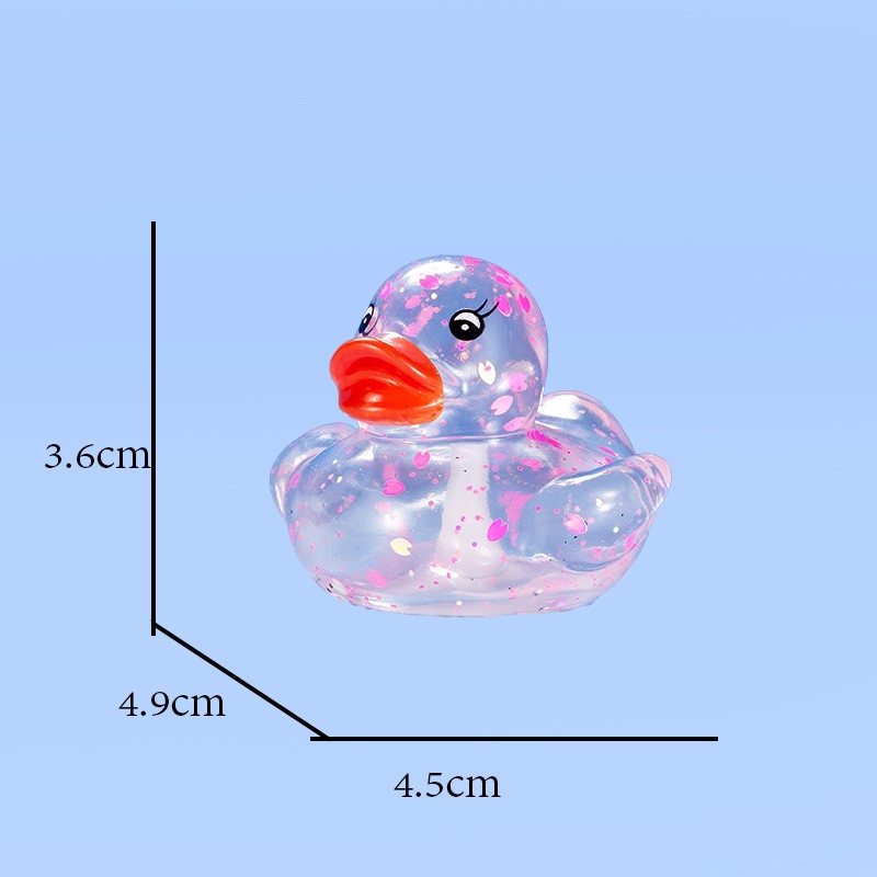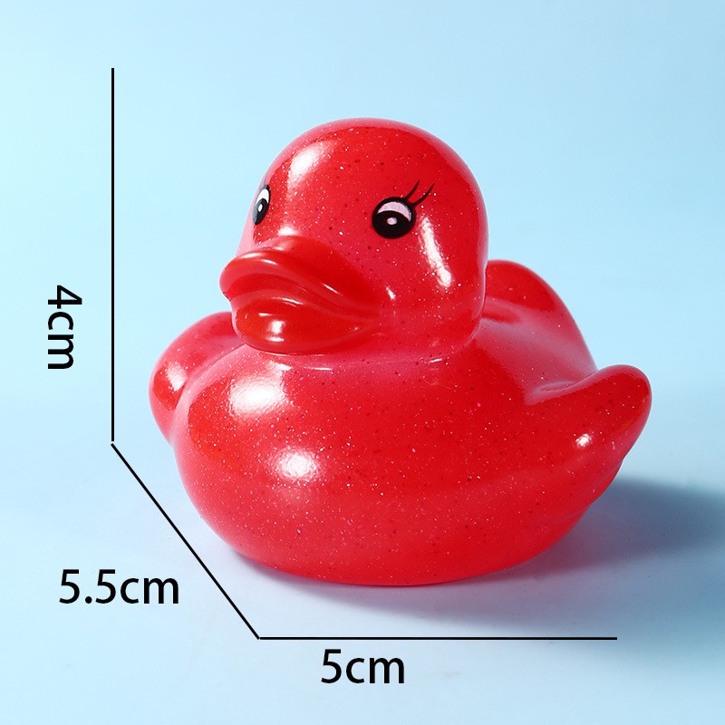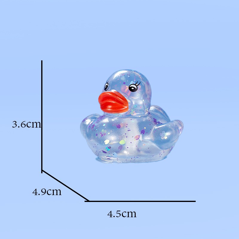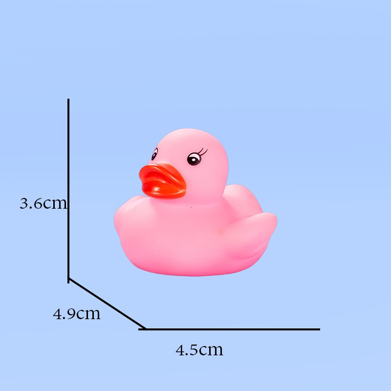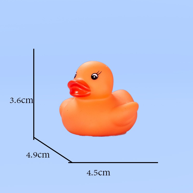 This duck is made of safe, non-toxic PVC material. It is durable and safe for babies to chew on during their teething phase. Size: 1.77" x 1.53" x 1.41". You can use it anywhere—whether in the pool or the bathtub.