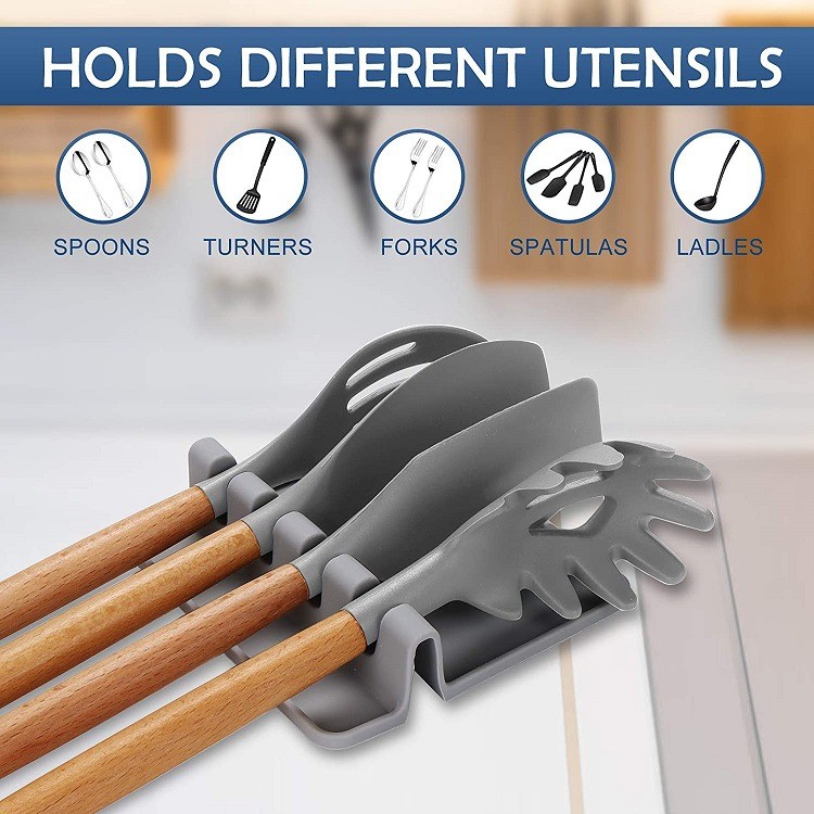 Keep your kitchen tools neat and accessible with this versatile silicone utensil holder rack. Made of durable, heat-resistant silicone, it features multiple slots to hold spoons, spatulas, ladles, knives, and other cooking tools, preventing mess and keeping your countertop organized.