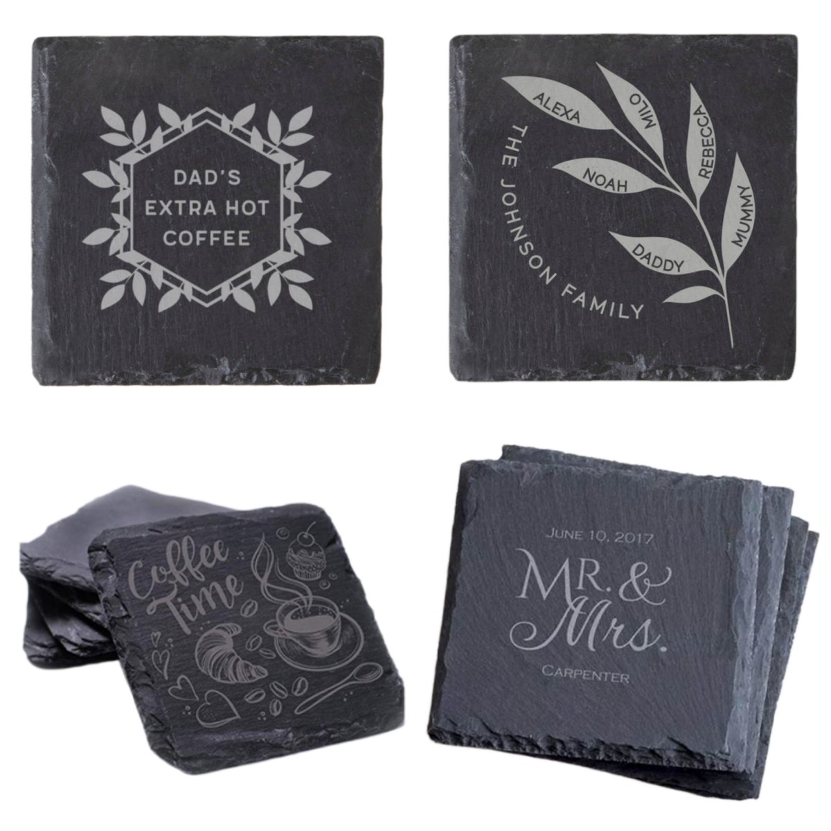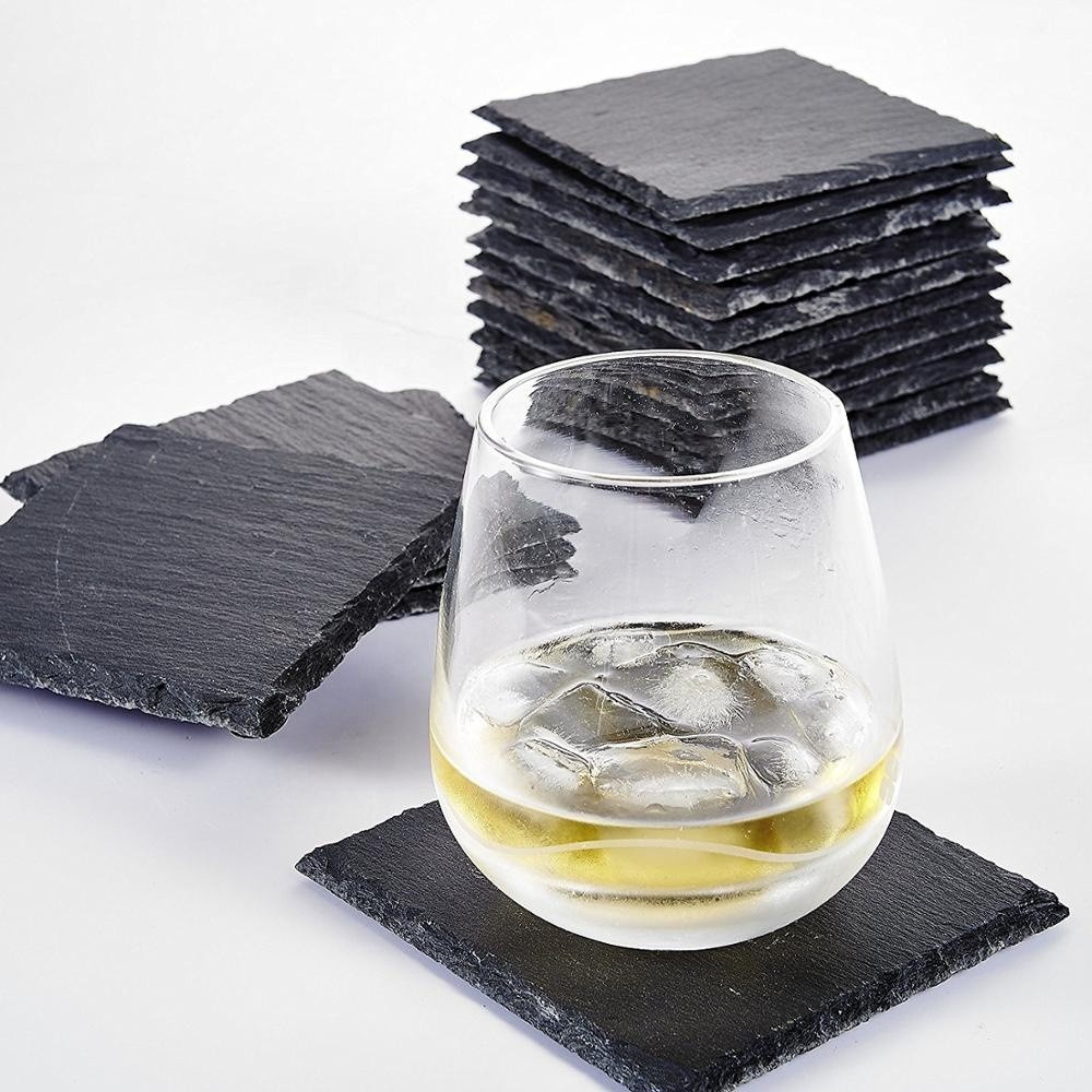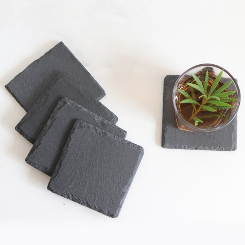 This square natural slate coaster adds a rustic and elegant touch to any table setting. Made from genuine slate, each piece features a unique texture and natural edge, giving it a distinctive look that stands out from standard coasters.