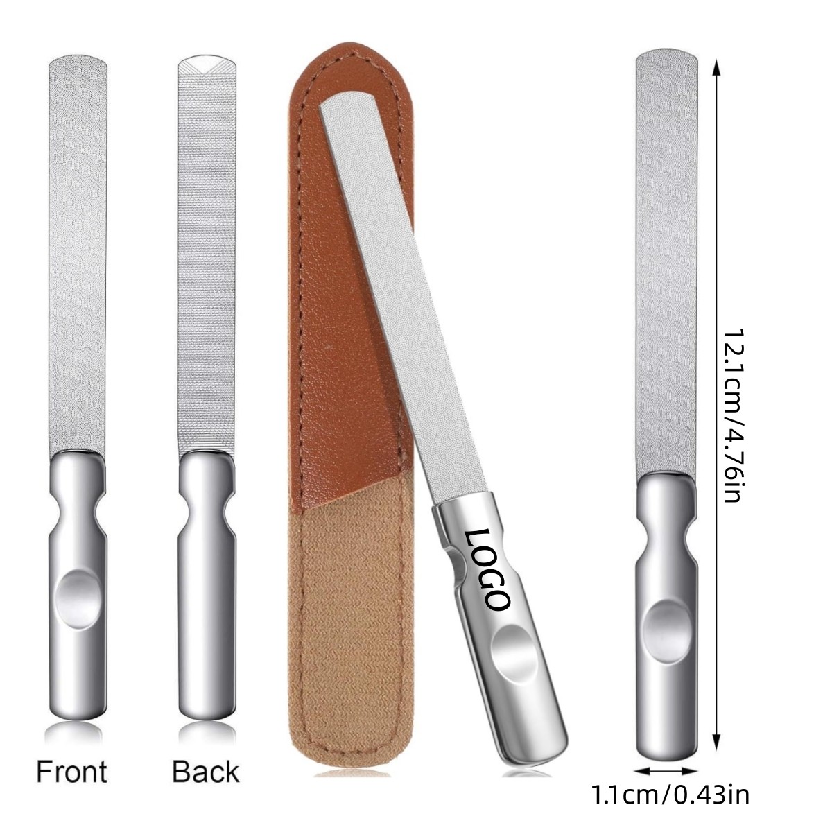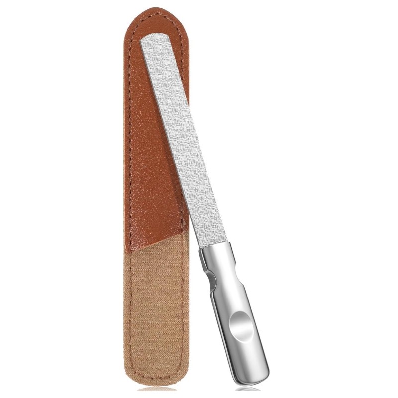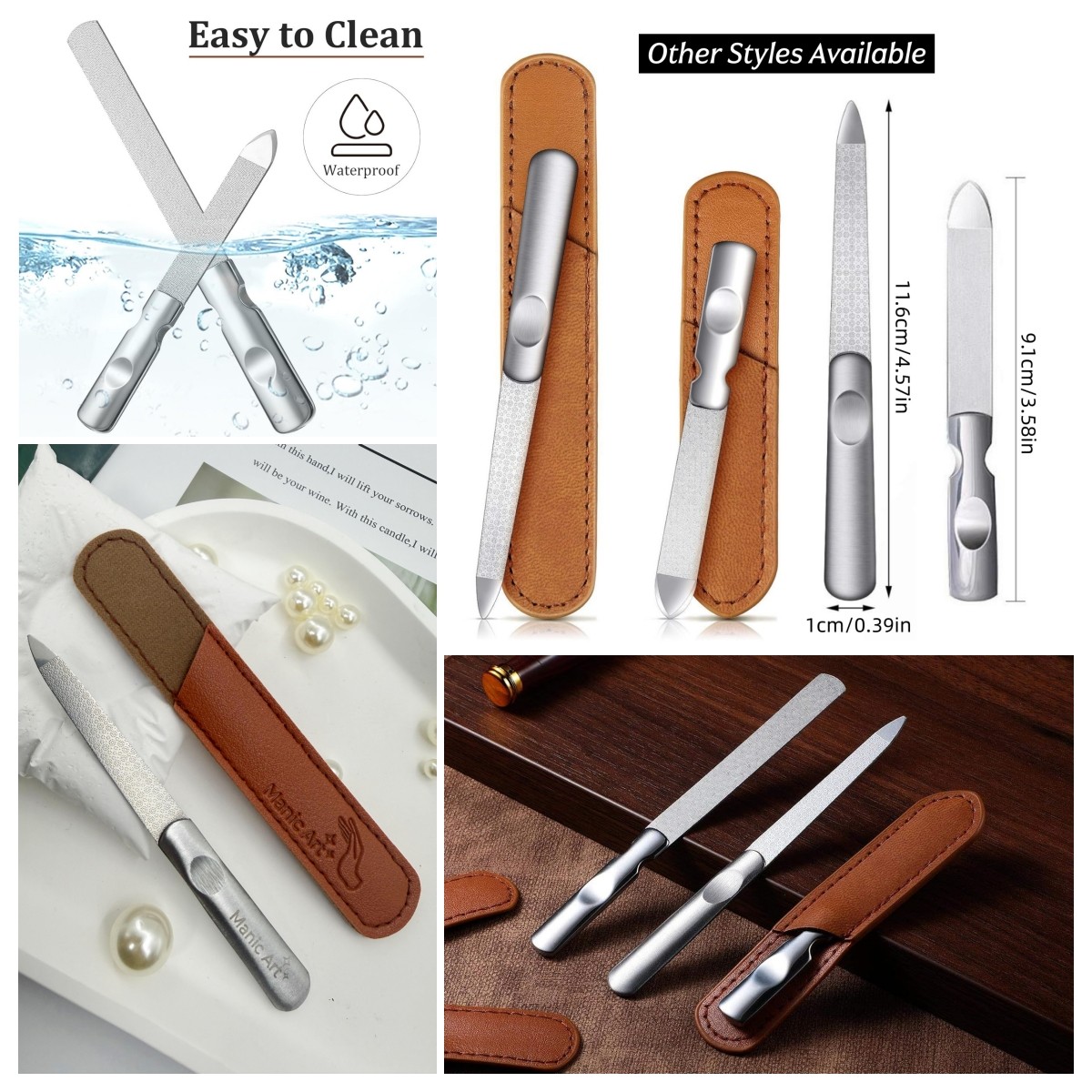 This stainless steel nail file with PU leather sleeve offers a sleek and practical solution for daily nail care, it delivers smooth and precise filing for both natural and artificial nails, leaving a clean and polished finish.