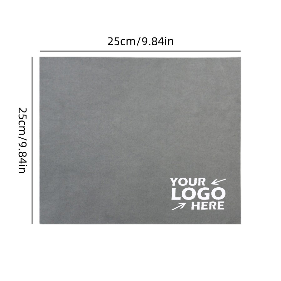 This suede eyeglass cleaning cloth measures 25 x 25 cm (9.84" x 9.84"), providing a large surface area for quick and effective cleaning. Made from soft suede material, it is gentle on delicate surfaces while helping remove fingerprints, dust, smudges, and oil without scratching.