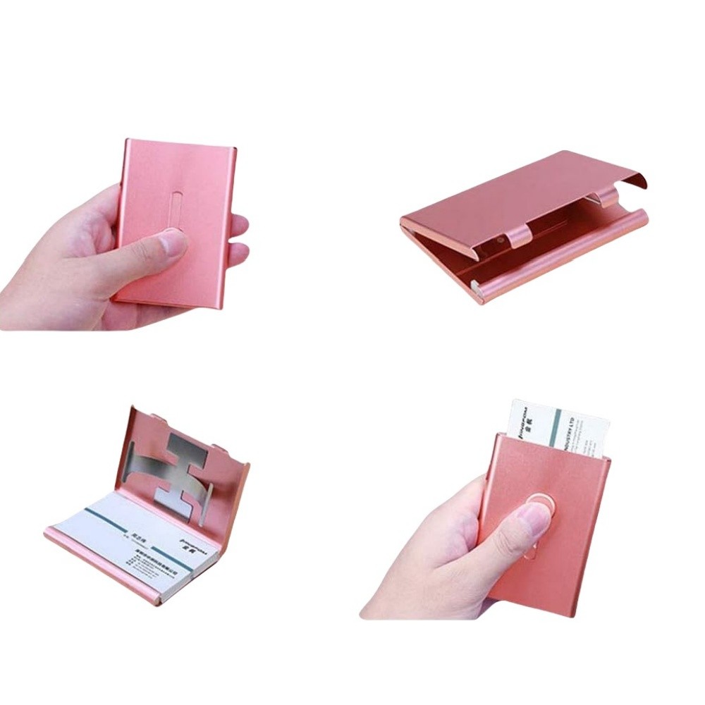 Crafted from premium ultra-thin stainless steel and aluminum with a frosted finish, this card holder boasts a sleek, portable design measuring just 9.4 x 6.6 x 1 cm (3.7" x 2.58" x 0.39"). Its universal and lightweight design makes it a perfect accessory for both men and women, easily fitting into any pocket or purse.