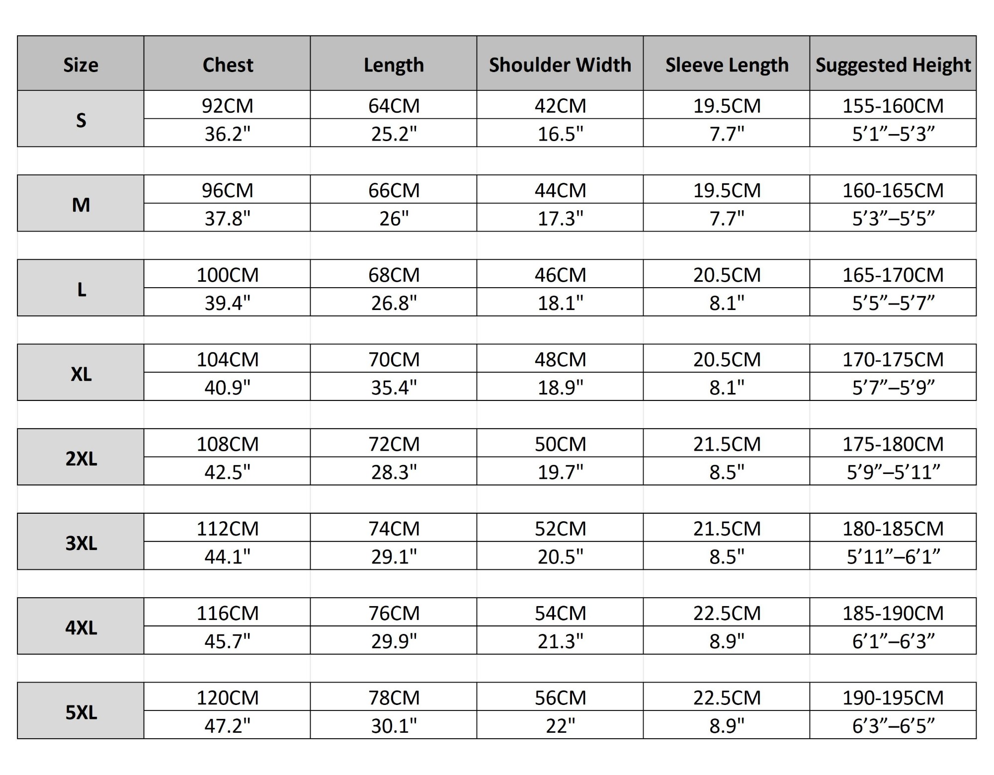• Size: S, M, L, XL, 2XL, 3XL, 4XL, 5XL