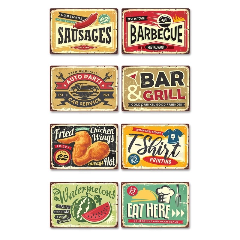The smooth metal surface delivers sharp detail and strong visual impact, making it ideal for themed décor or eye-catching displays. With custom design options available, this tin sign is also a great choice for promotional use, branded merchandise, or personalized gifts. Perfect for adding personality and charm to any wall. Please provide your artwork or design files for custom printing.