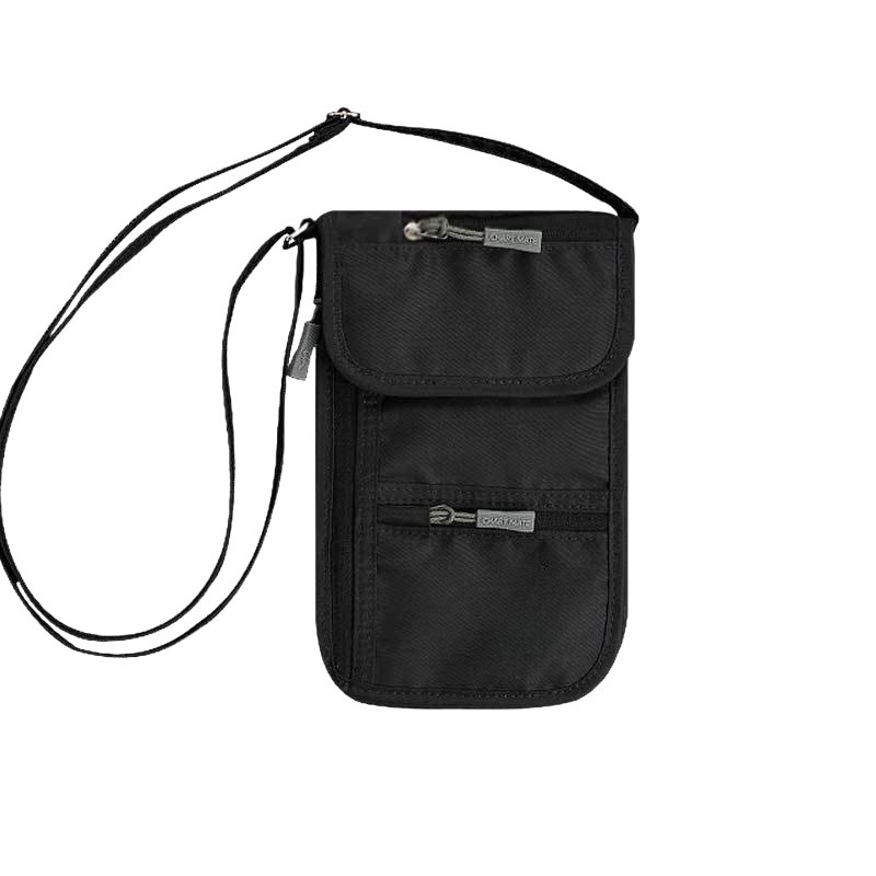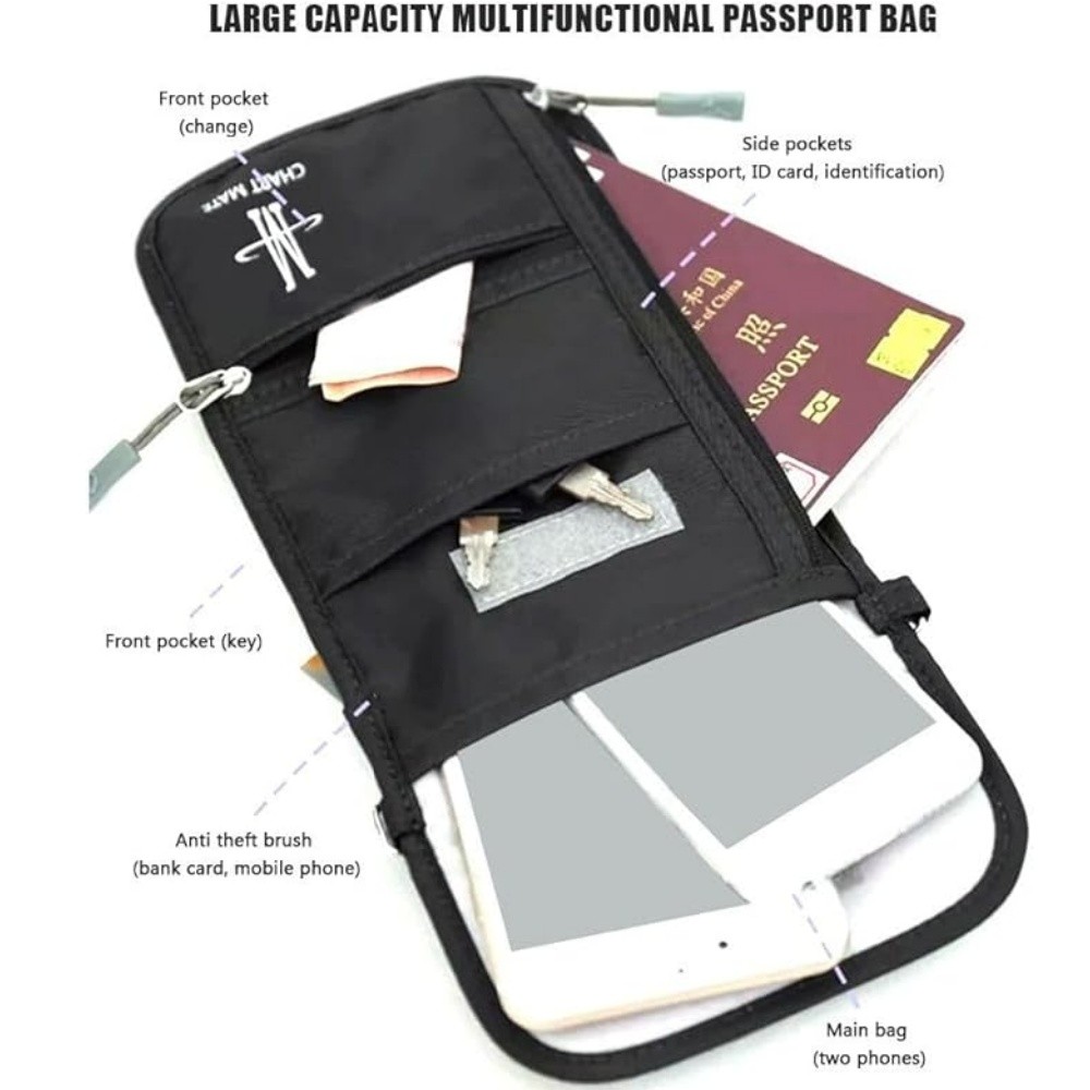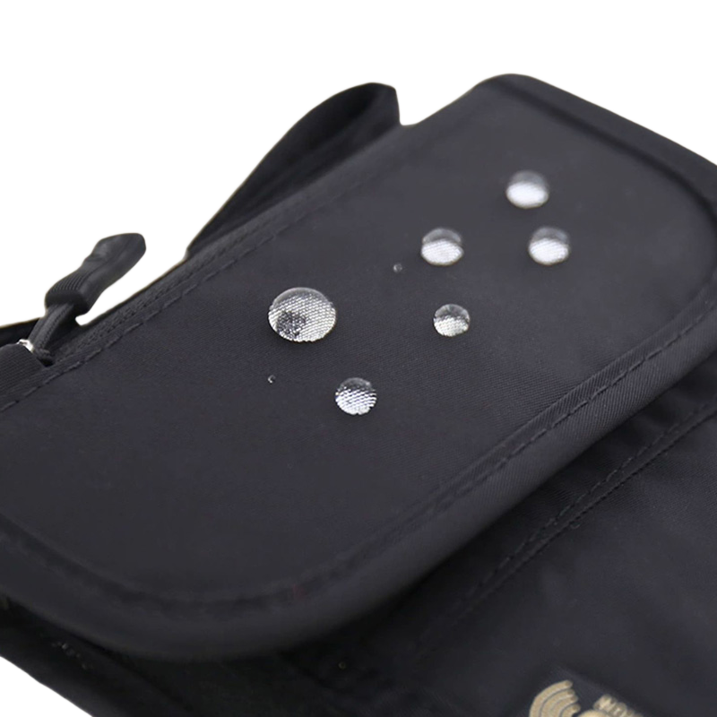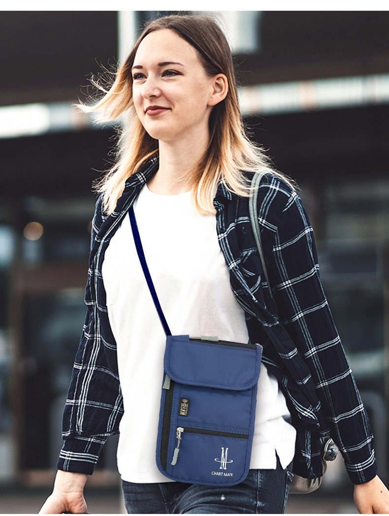 This travel passport holder is crafted from high-quality fabric, offering waterproof and tear-resistant properties. The back is made of a breathable material for enhanced comfort, preventing stuffiness even when worn close to the body.