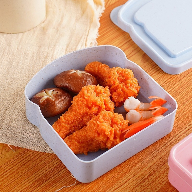 This toast-shaped sandwich box measures 12.5 x 3 x 13 cm (4.92” x 1.18” x 5.12”), making it perfectly sized for sandwiches, toast, and light snacks.